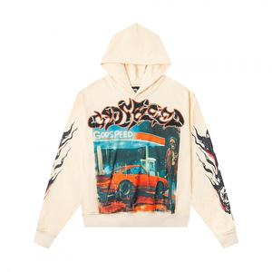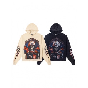 Godspeed跨境25ss秋冬新款直喷印花洗水复古纯棉嘻哈美潮帽衫卫衣