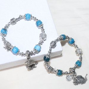 复古银饰蓝磷石手链民族风吊坠流苏手串文艺个性女款饰品手饰