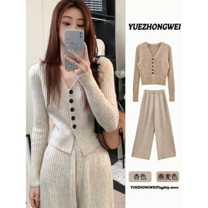 早秋穿搭套装2025新款秋季女装盐系轻熟小香风毛衣阔腿裤两件套装