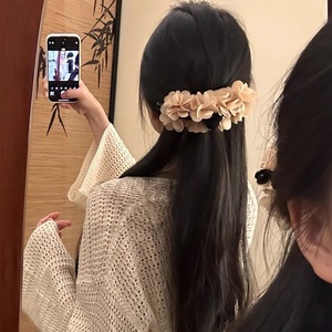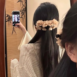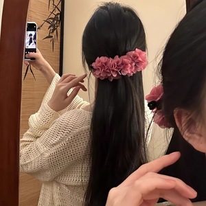 2025夏季「雾中观花」新中式粉色花朵香蕉夹女易梦玲同款抓夹头饰