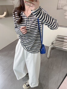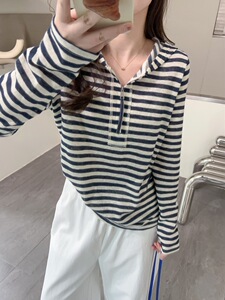 秋季新款学院风休闲运动套头连帽针织衫减龄显年轻半开链长袖上衣