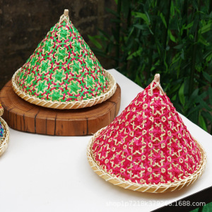 竹编圆锥形玫红色小号(罩子+盘)27*21cm