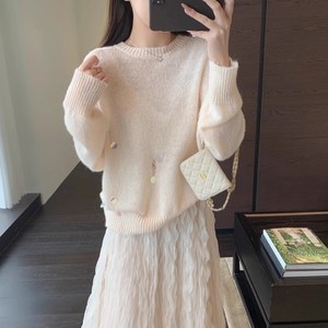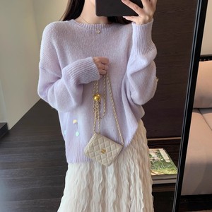 A13821温柔减龄 镂空亮片显瘦罩衫宽松套头针织毛衣女秋冬新