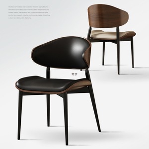 伊姆斯餐椅家用意式轻奢咖啡椅现代简约实木弯曲大师设计真皮椅子
