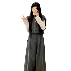 【三件套】马甲+打底衫+阔腿裤