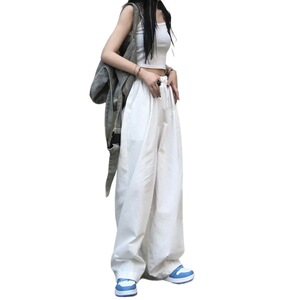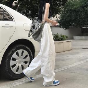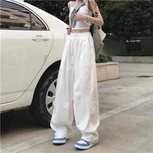 白色裤子女2025春秋新款宽松显瘦休闲裤学生高腰运动直筒阔腿裤潮