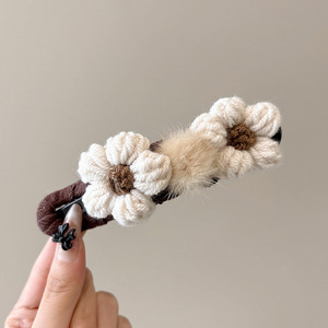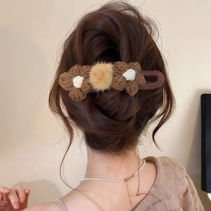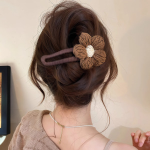 秋冬毛线花朵发夹女2025新款高级感抓夹大号后脑勺鸭嘴夹发卡发饰
