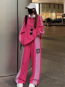 欧货大码2025新秋季时尚运动服两件套宽松显瘦休闲卫衣套装女胖mm