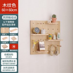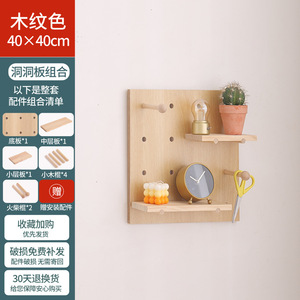 实木玄关洞洞板展示架商场幼儿园墙面装饰架木质隔板置物架洞洞板