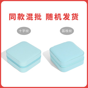 迷你简约首饰盒镜子收纳盒便携珠宝首饰收纳盒项链戒指软包盒