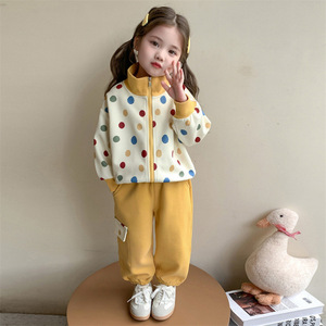 女童秋装套装2025新款洋气圆点儿童春秋外套女宝宝波点秋装两件套