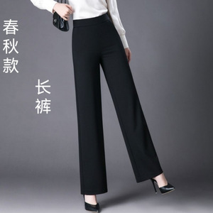 黑色九分直筒裤女士春秋季新款外穿高腰松紧中年妈妈阔腿裤子长裤
