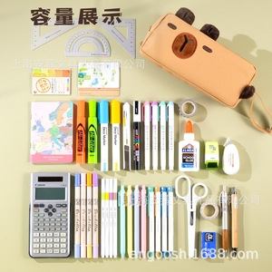 2025新款卡皮巴拉文具袋可爱猫咪铅笔盒小学生大容量便携手提笔袋
