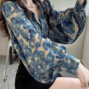 轻奢时尚2025春新款设计感小众碎花上衣气质衬衣显瘦灯笼袖衬衫女