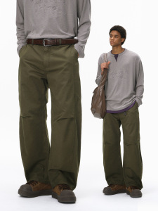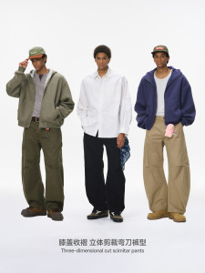 捷展男装|复古解构工装裤25秋季新品潮牌收褶剪裁宽松弯刀长裤男