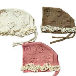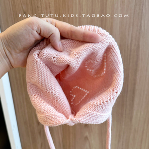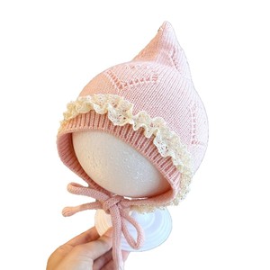 婴儿帽子秋冬季毛线帽薄女宝宝公主花边小月龄针织护耳帽精灵帽