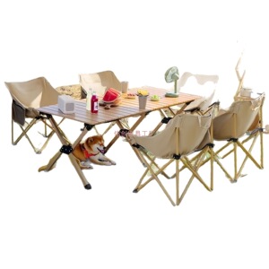 路林客露营野餐桌椅月亮椅户外便携折叠蛋卷桌子椅子野营全套装备