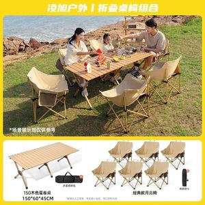 用时大 收纳小 不占空间 便于携带-150原木色+经典卡其月亮椅*6
