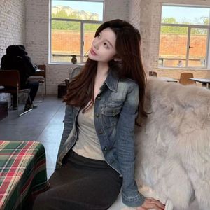 2025早秋美式鱼骨复古chic修身衬衫新款牛仔翻领短款外套修身显瘦