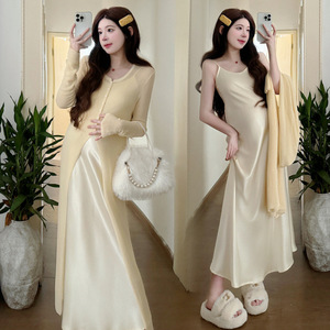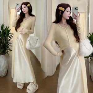 孕妇秋装连衣裙轻奢高级感气质针织开衫显瘦吊带裙长款早秋两件套