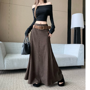 跨境法式气质优雅减龄高腰设计感配腰带百搭显瘦洋气鱼尾A字大摆