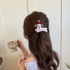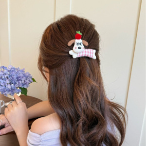 新款可爱西红柿呆萌小狗布艺鸭夹格子懒人夹边夹清新甜美刘海夹发