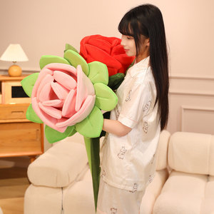 超大号1米仿真玫瑰花永生花毛绒抱枕居家摆件七夕情人节日礼物女