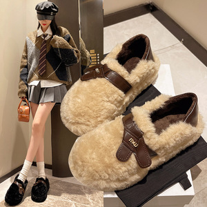 厚底毛毛鞋女外穿2025秋冬新款百搭一脚蹬豆豆鞋加绒乐福鞋棉鞋子