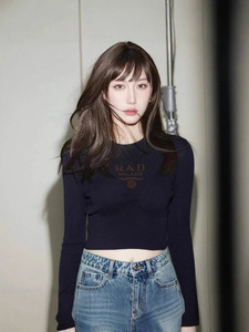 人手一件~25秋冬南油高端女装字母logo修身短款弹力羊毛针织长袖