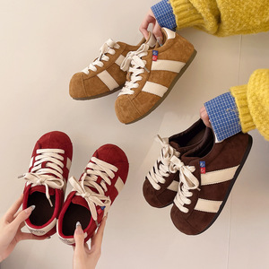 复古磨砂大头板鞋女2025秋季新款平底内增高低帮运动鞋休闲德训鞋