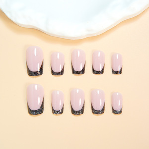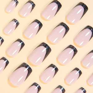 24片每盒中长款时尚黑色法式假指甲裸色百搭美甲贴片欧美暗黑穿戴