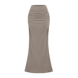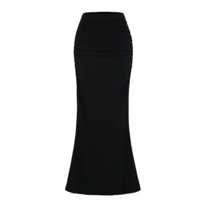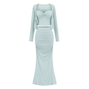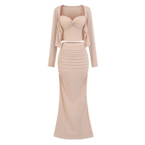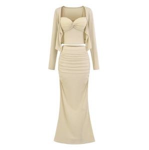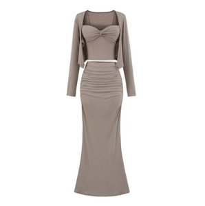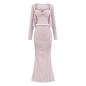 圆领长袖开衫T桖女2025夏新款辣妹风胸垫吊带背心+包臀鱼尾裙套装
