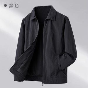 黑色外套男春秋季2025新款防风百搭商务青年休闲薄款翻领行政夹克