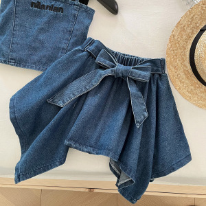 女童套装2025夏季新款无袖牛仔背心上衣儿童牛仔短裙三件套0008