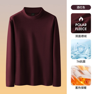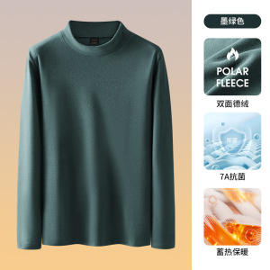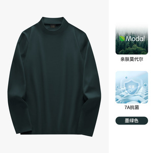 50支丝光莫代尔 半高领男士长袖t恤打底衫秋冬加绒内搭保暖上衣服