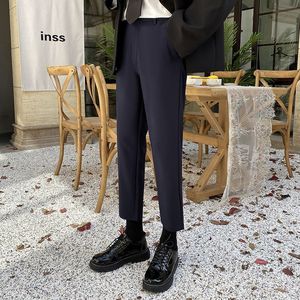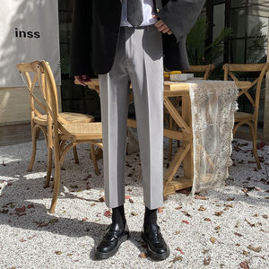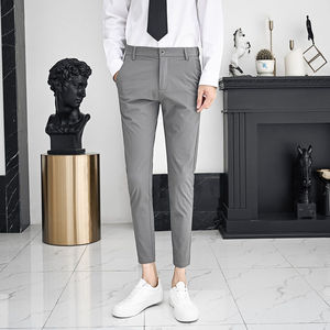 裤子男春春秋修身西裤男士九分裤韩版潮流休闲裤黑色百搭小脚男裤