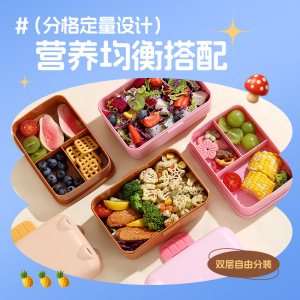 高颜值双层学生饭盒配餐具上班族分格密封便当盒塑料卡通儿童餐盒