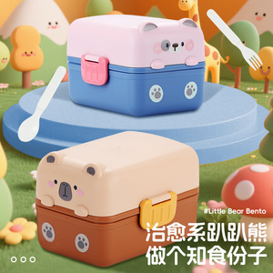 趴趴熊创意卡通动物双层便当盒