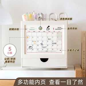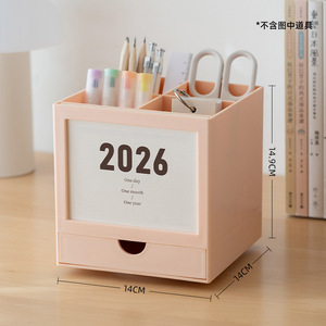 旋转笔筒26年新款台历创意两用塑料收纳盒学生桌面计划记事收纳