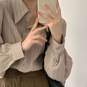 法式复古蓝色褶皱休闲时尚衬衫女设计感春秋宽松长袖港风衬衣潮