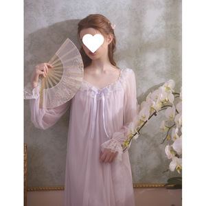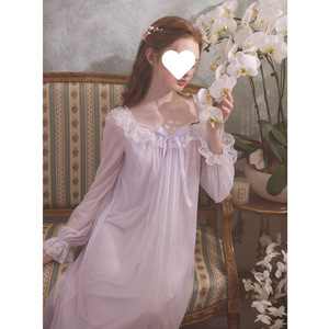 睡裙2025年春秋季蕾丝宫廷公主法式网纱甜美长袖长款家居服睡衣