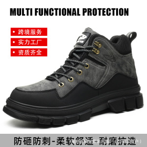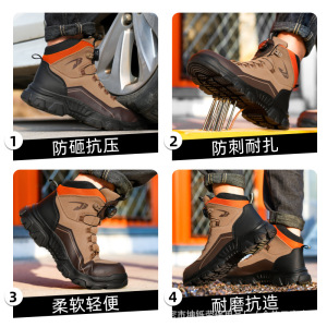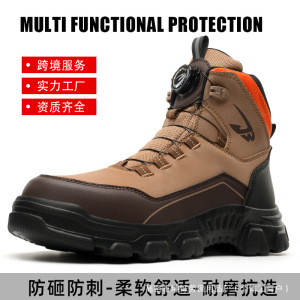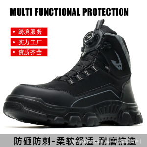 新款时尚防砸防刺穿高帮舒适劳保鞋男 旋转纽扣防泼水工作防护鞋