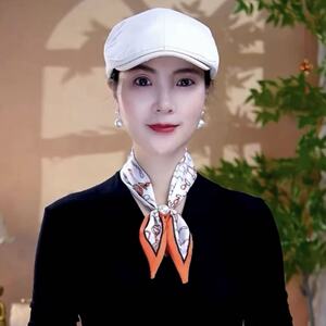 【冰丝缎珠珠蝴蝶结小丝巾】时尚百搭吸扣丝巾