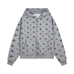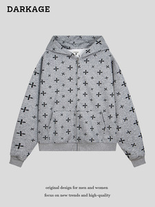 美式复古十字架满印连帽卫衣2025年女秋季慵懒风运动拉链开衫外套