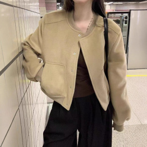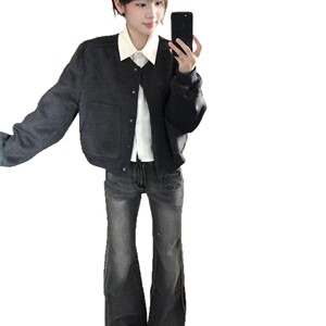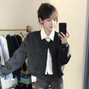 美式灰色棒球polo领外套2025春秋季新款休闲复古宽松短款夹克上衣