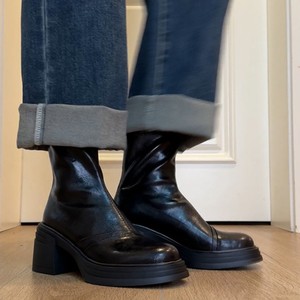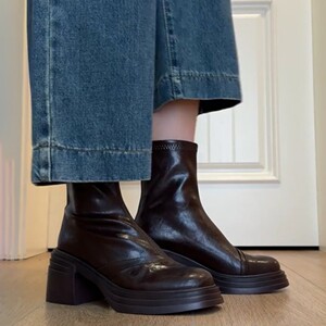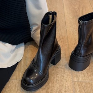 羊皮版~真皮厚底增高小个子高跟短靴女圆头加绒秋冬瘦瘦靴马丁靴