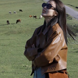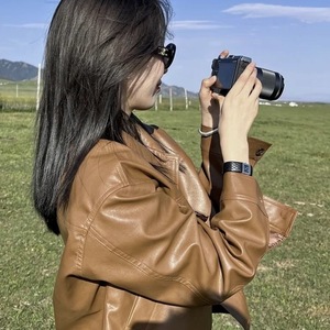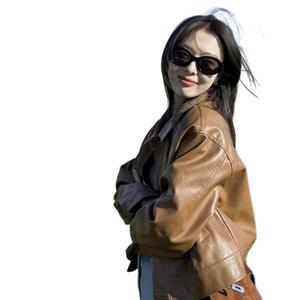 2025秋季新款翻领美拉德外套女小个子短款美工复古PU皮夹克上衣潮