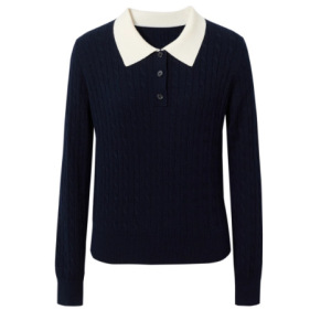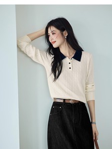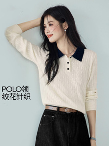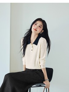 伊*L撞色绣花百搭羊毛薄款POLO领针织衫2025秋季新款1G4932171