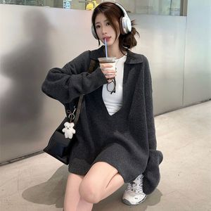 大码女装春秋季新款圆领弹力T恤大V领坑条针织衫短裤休闲两件套潮