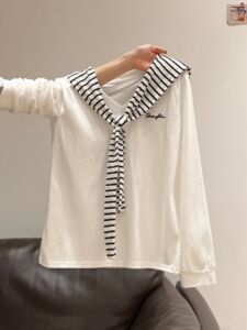 特大码240斤设计感V领披肩字母刺绣长袖T恤女秋宽松显瘦小众上衣
